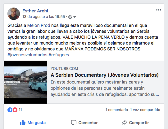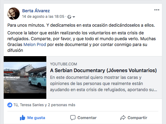 En este documental quiero mostrar las caras y opiniones de las personas que realmente están ayudando en esta crisis de refugiados, aportando su tiempo, su esfuerzo y que están haciendo el trabajo que los gobiernos, no saben o no quieren afrontar y que deberían estar haciendo con nuestros impuestos.